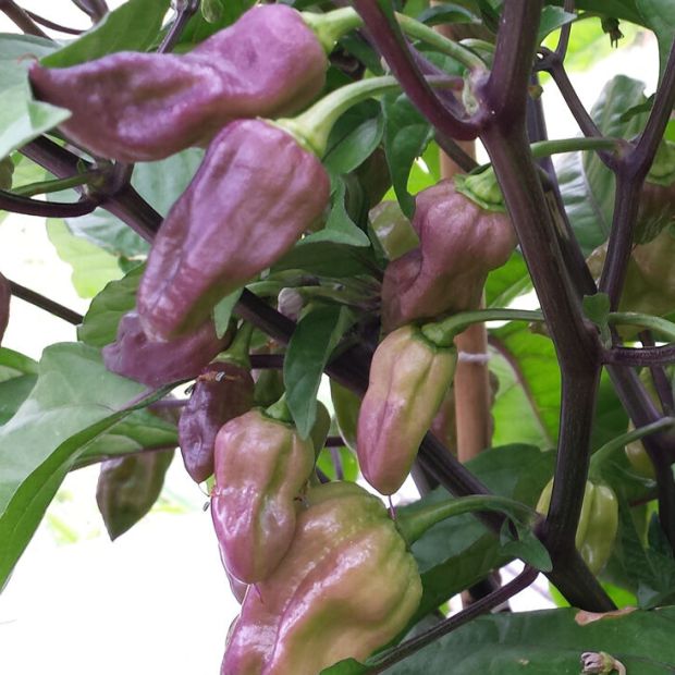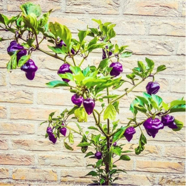 Deze paarse peper is een natuurlijke variant van de rode hitte-koning, net zo (extreem) heet en rijpt uiteindelijk naar dieprood!